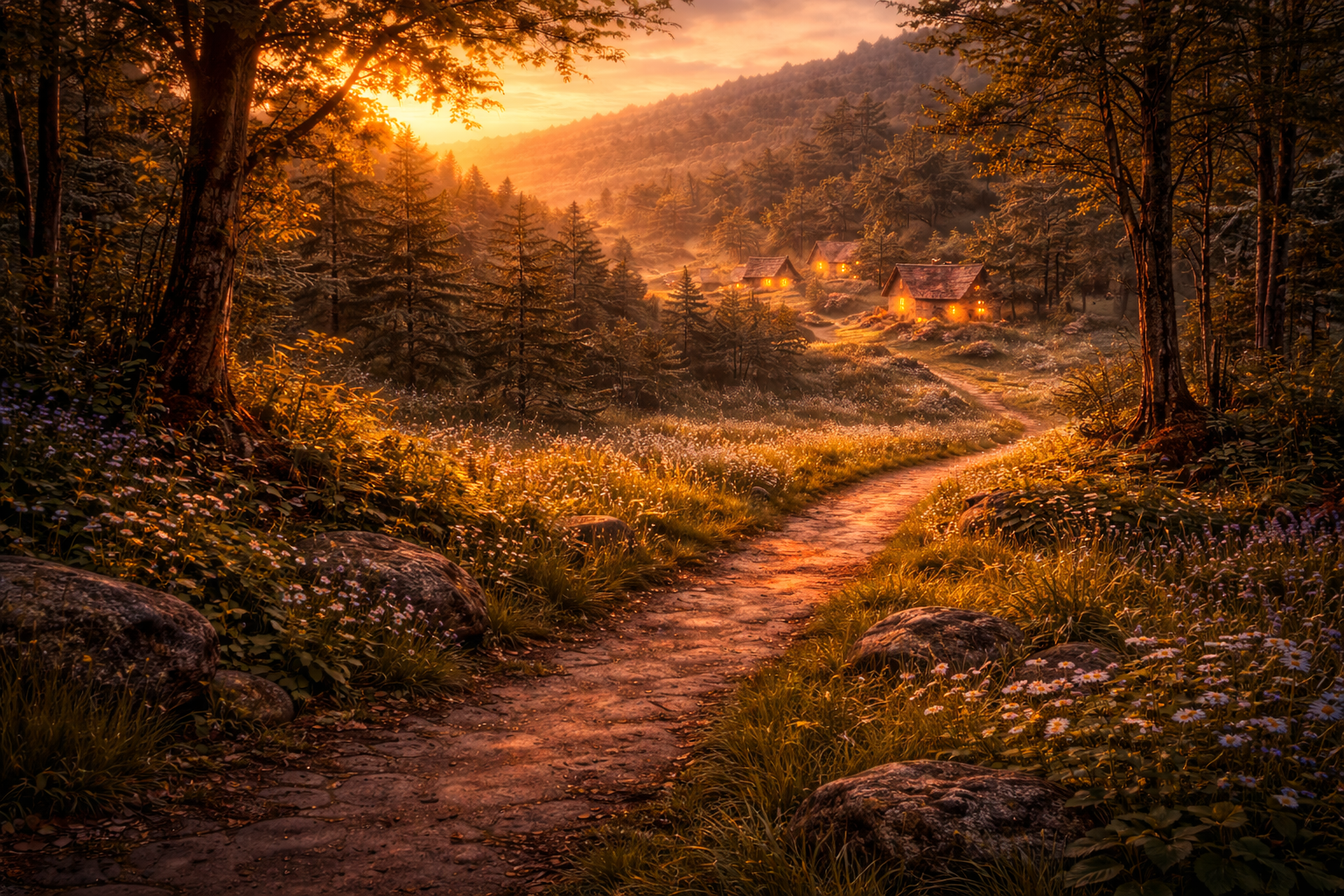 Du hast den Dorfplatz hinter dir gelassen.
